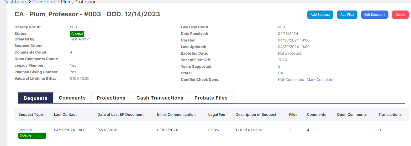 Everything in True BQuest is tied to a decedent profile. In this article, we’ll go over how to find a specific decedent in the system and view their profile.