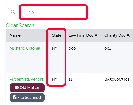 To clear search results, click Clear Search under the search bar.